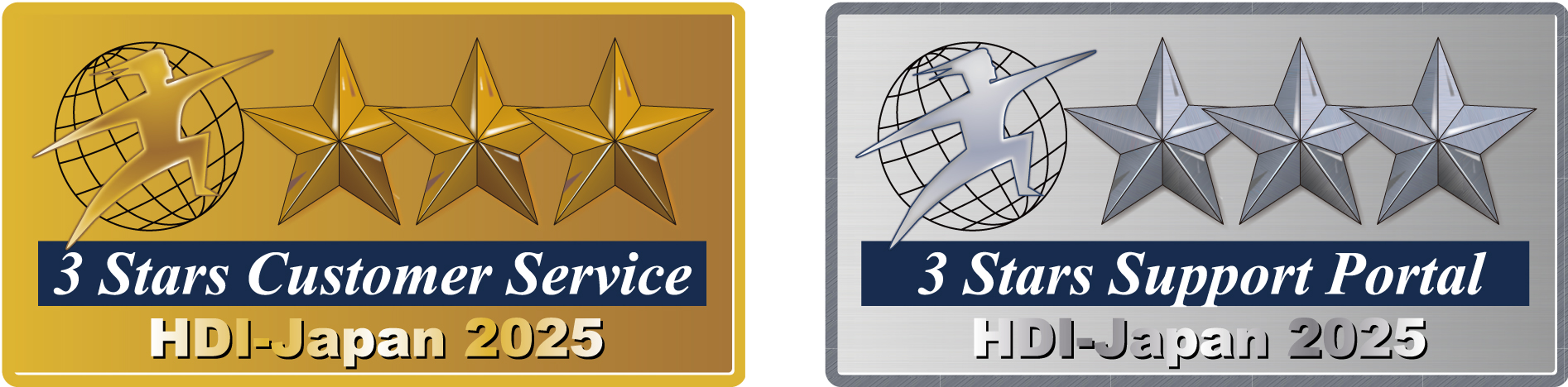 HDI-Japan主催の、公開格付調査「電話応対・Webサポート」の両部門において最高評価の三ツ星を獲得しました。(2023年,2024,2025年連続)
