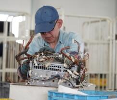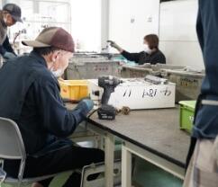 指導員の説明を受けながら、それぞれのペースで給湯器の分解・分別作業を行います。