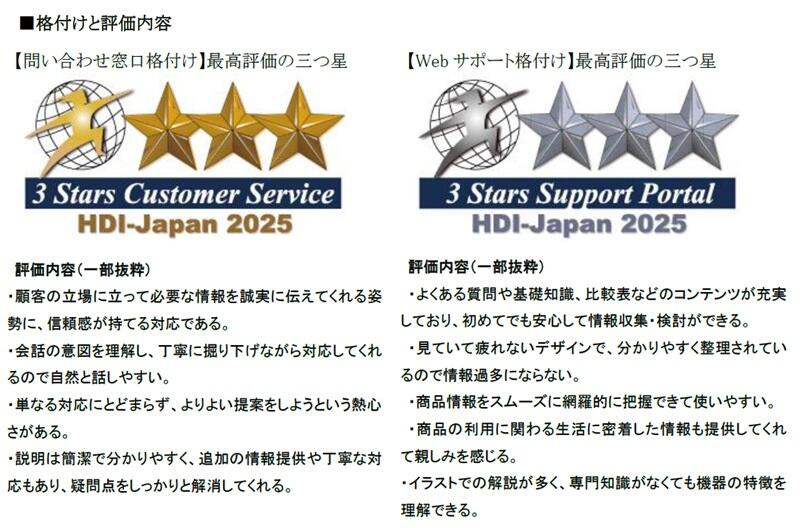 湯まわり設備メーカーの株式会社ノーリツ(本社:兵庫県神戸市、代表取締役社長:竹中昌之)のコンタクトセンターは、HDI-Japan(運営会社:シンクサービス株式会社)が主催する、2025年公開格付け調査の「問合せ窓口格付け」「Webサポート格付け」両部門において、最高評価の三つ星を3年連続で獲得しました。