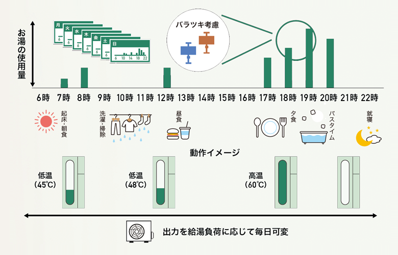 • 曜日、週ごとのお湯の使用量を細かく学習