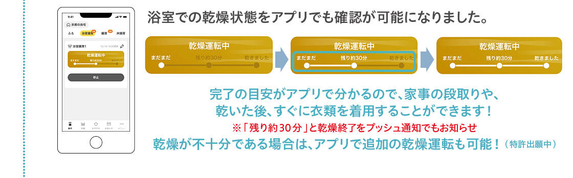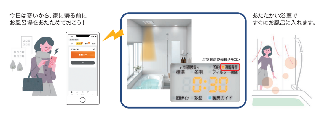 家の外からでも、アプリで浴室暖房乾燥機の操作が可能になりました。