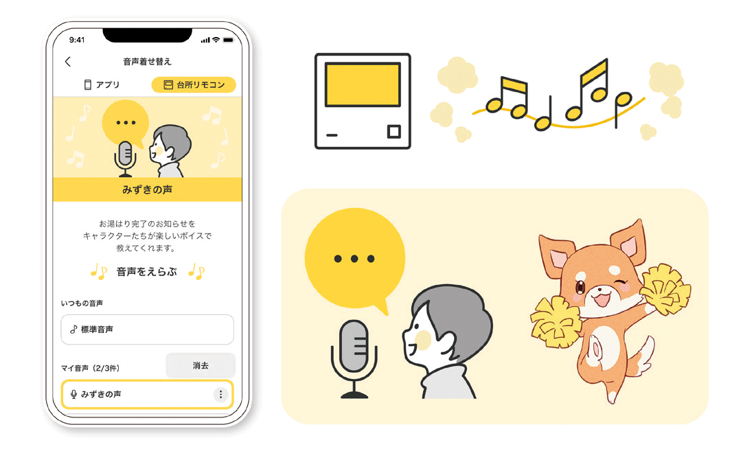 台所リモコンとアプリの沸き上がりお知らせ音声をそれぞれ着せ替え!