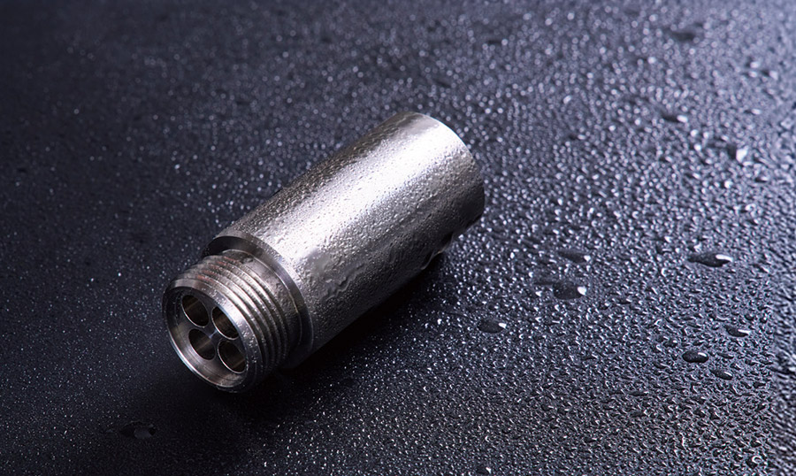 水流に回転と圧力変化を与えるコアを一定の距離で配置することで、ウルトラファインバブル※1を発生させます。(キャビテーション式)