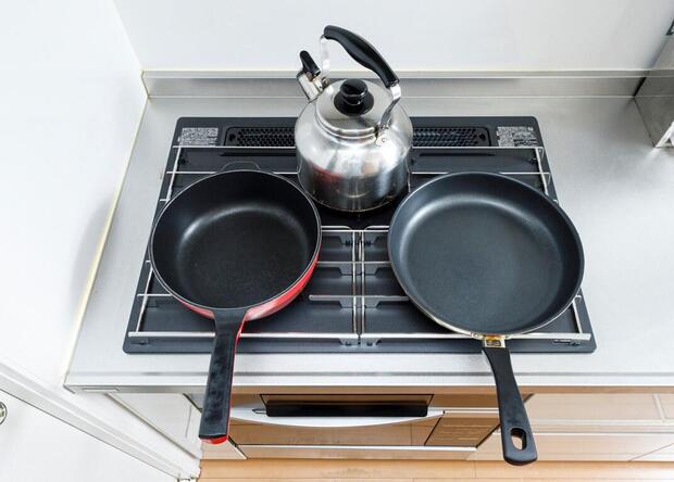 新しいプログレに替えてまず感じたのは、調理器具が使いやすくなったことですね。大きめの鍋やフライパンを使っているので、以前のコンロだと寸胴とフライパンを置くと間がギチギチに詰まっていたのですが、バーナーの間が広がって置きやすくなりました。2cmの違いですが、調理器具を3つ並べて使ったりしても間に余裕があるので、調理がしやすく感じます。