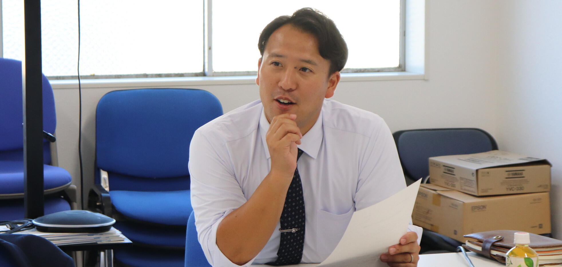 事務所にて営業ミーティング